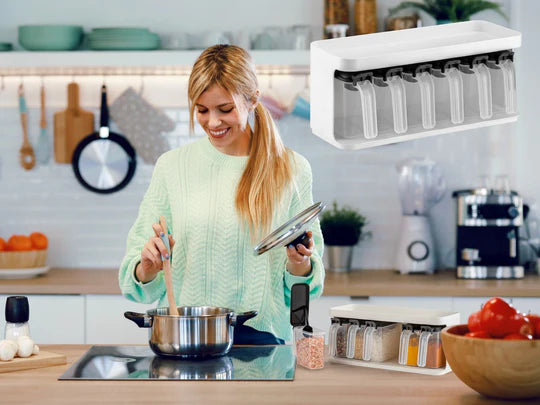 Easy store your spices with this set, easy to use with one hand hold and press to open