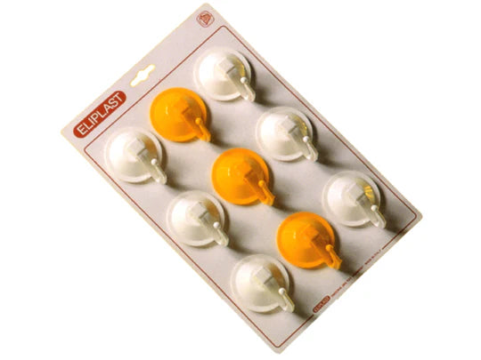 The suction cup lever hook of Eliplast is manufactured from sturdy polypropylene. Simple design with PVC suction cup adheres to smooth surfaces. Size: 6.5 cm تعاليق ضغط بلاستيك تتعلّق على الأسطح الملساء حجم صغير