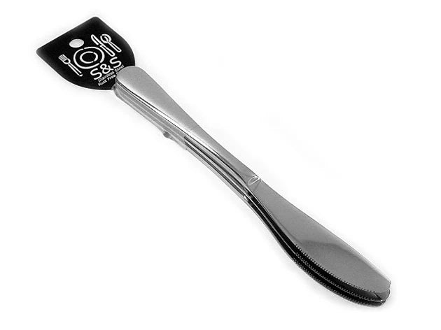 Plain dinner knives. Excellent durability and functionality. Fabricated from 18-0 stainless steel. Elegant style with beautiful handle shape. سكاكين أكل نقشة سادا. متينة و استخدامها عملي. مصنوع من الاستنلس 18-0