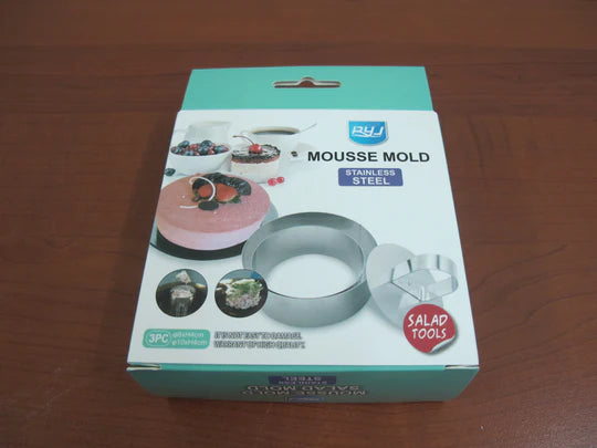 3 Pcs Round Shape Set includes 2 Rings and 1 Cover Ideal for creating Round Shape appetizers, molded salads, cakes, mousse and desserts Sizes: 8*4 cm 10*4 cm طقم حلقات استنلس لتقطيع الكاتو شكل دائري مع غطاء يحتوي هذا الطقم على حلقتين و غطاء دفّاش المقاس 8*4 cm 10*4 cm